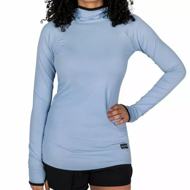 This hooded sun shirt from BlackStrap is made in the USA and features a 4-way stretch SUNsoft fabric that is ultra-lightweight, breathable, and UPF 50+ rated for sun protection that blocks 97.5% of harmful UV rays. The full contoured hood provides seamless neck, ear, and scalp protection. The relaxed fit and ultra-lightweight design combined with the evaporative cooling attributes are sure to make this your go-to everyday sun shirt for any outdoor adventure. Whether you are basking in the sun, hiking the trails, paddling on the water, fishing, or relaxing in town, enjoy the outdoors without the burn.