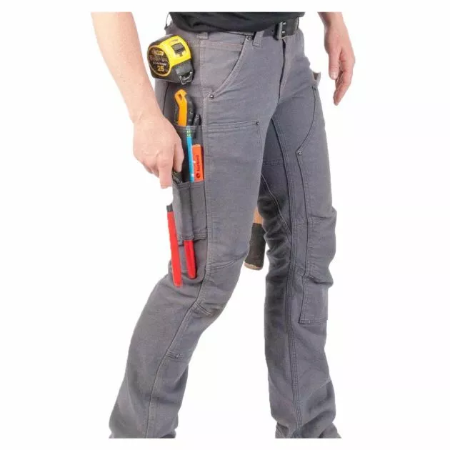The Britt Utility in stretch canvas is a new straight-leg fit, relaxed through the hip and leg, with room for boots. This high performance work pant is for the woman who wants a gender-neutral pant on the job. Offered in custom Dovetail 12-oz. stretch duck canvas, proven to be more durable than any other duck canvas on the market, this pant is no mere working stiff. Its gusseted crotch, double front, extra pockets, and articulated knees mean that, just like you, this work pant does more. So yeah, of course the guys are jealous.