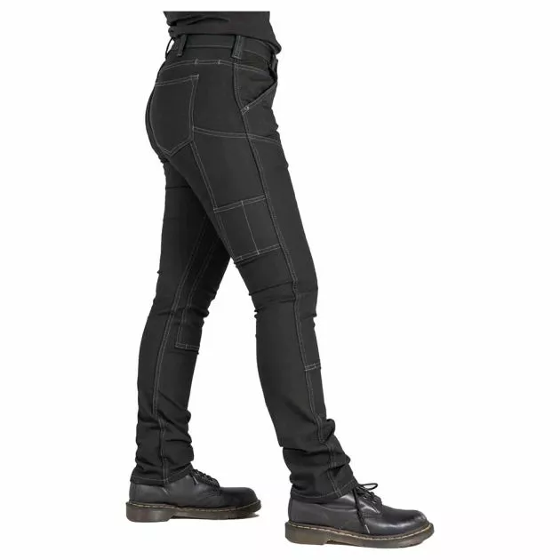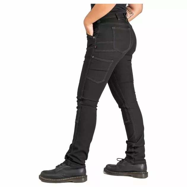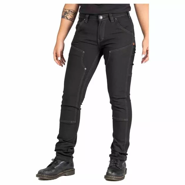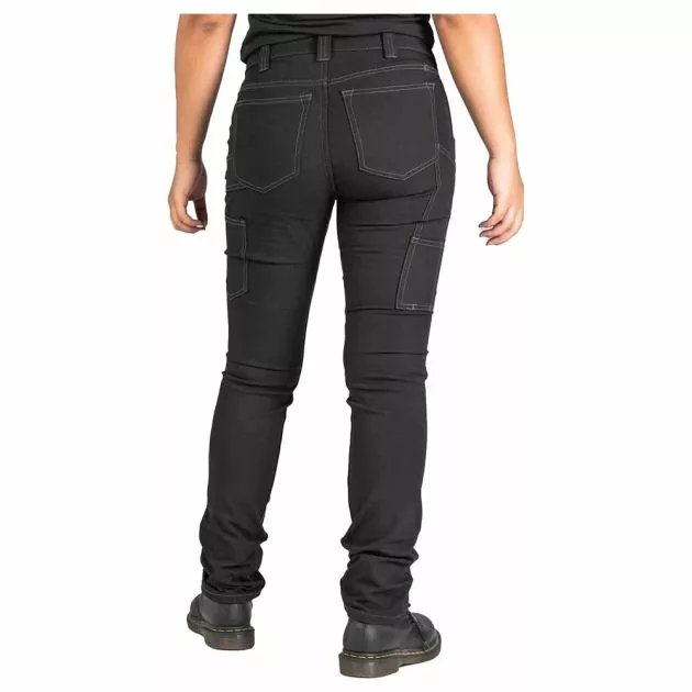 Unbreakable. No Fade black color. Built for the stagehands, stuntwomen, set crews, service staff, and the woman who want her black uniform as strong and sharp as she is. Our midweight stretch canvas with CORDURA® resists abrasion, but lets you flex your moves in comfort. This No Fade stretch canvas fabric was created by a woman-led power team. Using a pioneering, planet-loving waterless dye process—aka witchcraft—we infused the fibers with potent jet-black color that won’t wimp out in the wash. Show up, never quit, in pants that do the same.