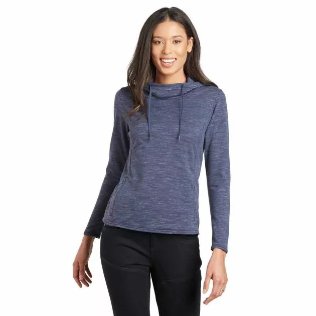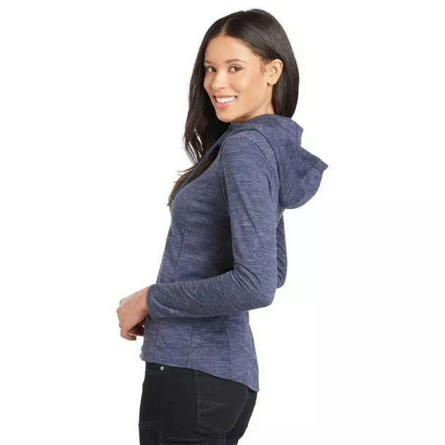 Achieve peak comfort in the Helix Hoodie from Kuhl. A fun, sporty top that can be worn on its own as well as under more protective layers for outdoor excursions, the versatile Helix can go with you anywhere for lasting comfort and convenient warmth. Constructed with an incredibly soft and cozy Komposure fabric that encourages movement while providing warmth, this trail-to-town hoodie is crucial in the fight against declining temperatures. Cut in a flattering fit with complimenting princess lines, you’ll look as good as you feel when you’re wearing the Helix Hoodie from Kuhl. Signature thumb loops and a secure zippered kangaroo pocket.