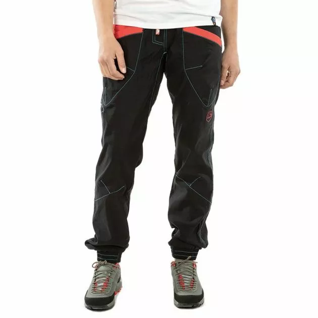 The Mantra Pants from La Sportiva are highly functional all synthetic climbing pants built with articulated knees, diamond gusset crotch and buckets of other climbing features. They are super comfortable for long days.