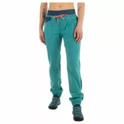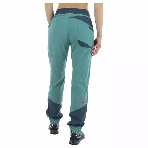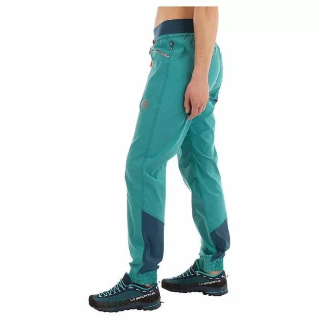 La Sportiva’s best-selling Mantra Pant is back with fresh updates. Made with a mix of recycled polyester and organic cotton, the Bluesign® approved fabric is stretchy and offers superior comfort. Articulated knees and a gusseted inseam provide room for free movement. A thick elastic waistband with an added drawstring keeps the Mantra Pant put throughout your climbing session.