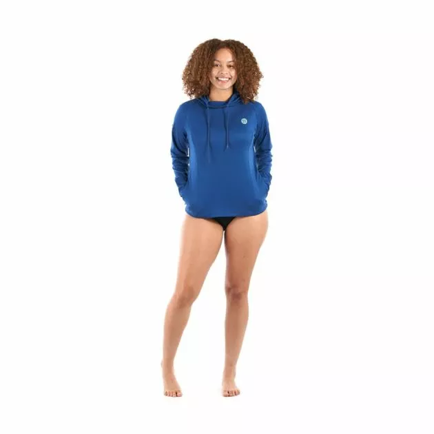 The perfect calm water and post-swim hoody. Whether you are going for an early morning paddle or looking for a warm layer after a swim, the Mist is the perfect hoody for you. The Mist Hoody is constructed with a lightweight brushed polyester with a yarn-applied hydroshield coating to repel water. It is designed with flat stitched seams to prevent chafing. With a sun protection rating of UPF 50+, this lightweight hoody is a great way to keep the sun off your skin while on the water.