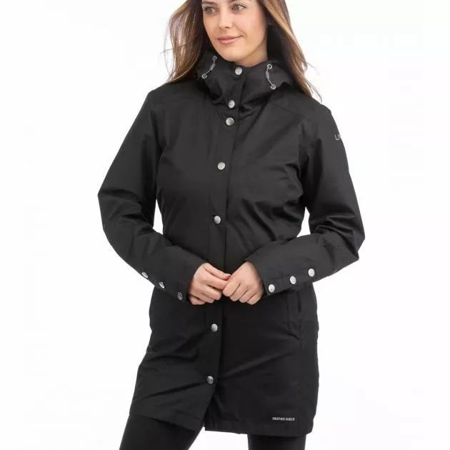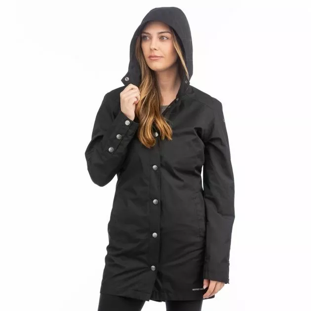 Tired of getting a soggy bottom when it rains? With the Women’s Garnet Long rain shell, you won’t have to worry ever again! This relaxed fit, below the hip length shell will keep you prepared when the rain starts to fall with a snap front closure, kick pleat at the back hem, vented back yoke and an adjustable hood.