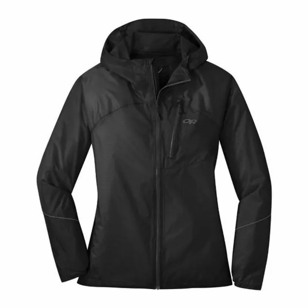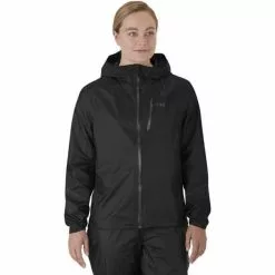 When clouds gather, slip on the light, durable storm protection of the women’s Outdoor Research Helium rain jacket. Pertex® Diamond Fuse technology resists abrasion without adding unnecessary weight.