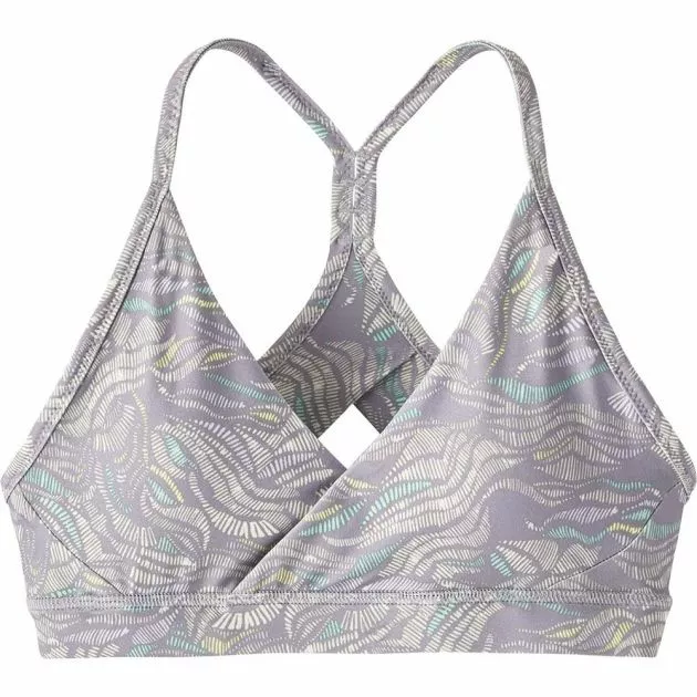 Patagonia’s Cross Beta Sports Bra has a crossover front design that reduces heat retention and provides extra support. Extremely soft polyester (43-85% recycled)/spandex jersey fabric wicks moisture, dries fast and provides comfort for all-day/all-trip wear. An innovative perforated elastic band creates increased breathability for extended wear. Best for A/B cup sizes; modest support for B/C. Fair Trade Certified™ sewn.