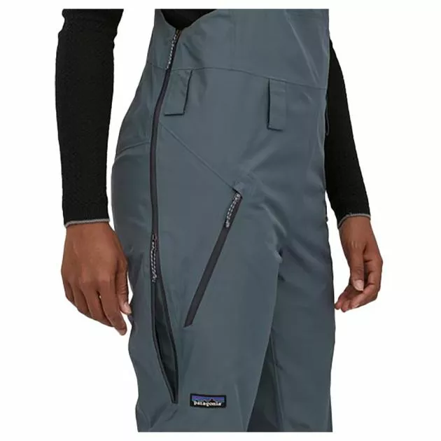 - Pocket Details: Bibs feature a secure drop-in chest pocket with internal webbing loop for valuables. Two open, drop-in pockets inside the chest panel work as handwarmers or glove storage; two zippered mid-thigh pockets