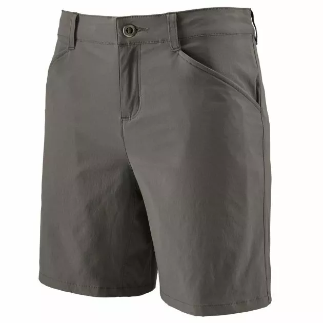These lightweight hiking shorts with a 7″ inseam are made of stretch-woven 95% nylon (65% recycled)/5% spandex with a DWR (durable water repellent) finish.