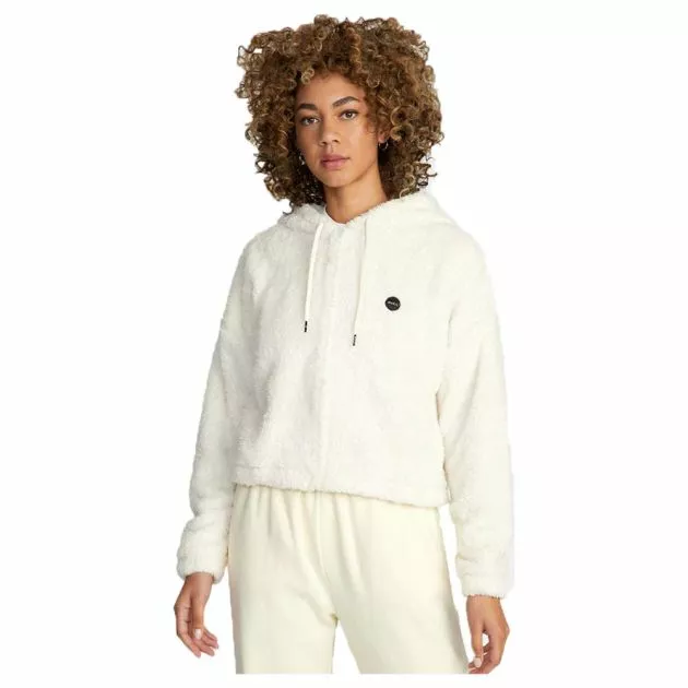 With an oversized crop shape, the fuzzy zip-up jacket is perfect for layering over workout clothes or to enjoy a lazy weekend at home.