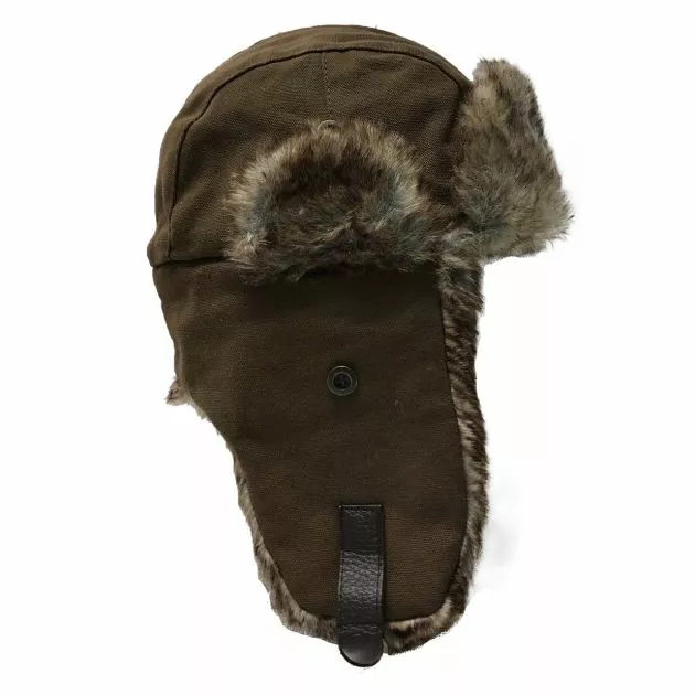 Winter waits at a distance when you’re wearing this rugged trapper hat. Woolrich’s Canvas Trooper offers the warmth and versatile good looks that takes you through winter in comfort. The tightly woven cotton canvas with quilted lining resists wind and cold. And the ultra-soft faux fur trim looks great and feels incredible, whether you wear the ear flaps down or tied up with the faux leather straps.